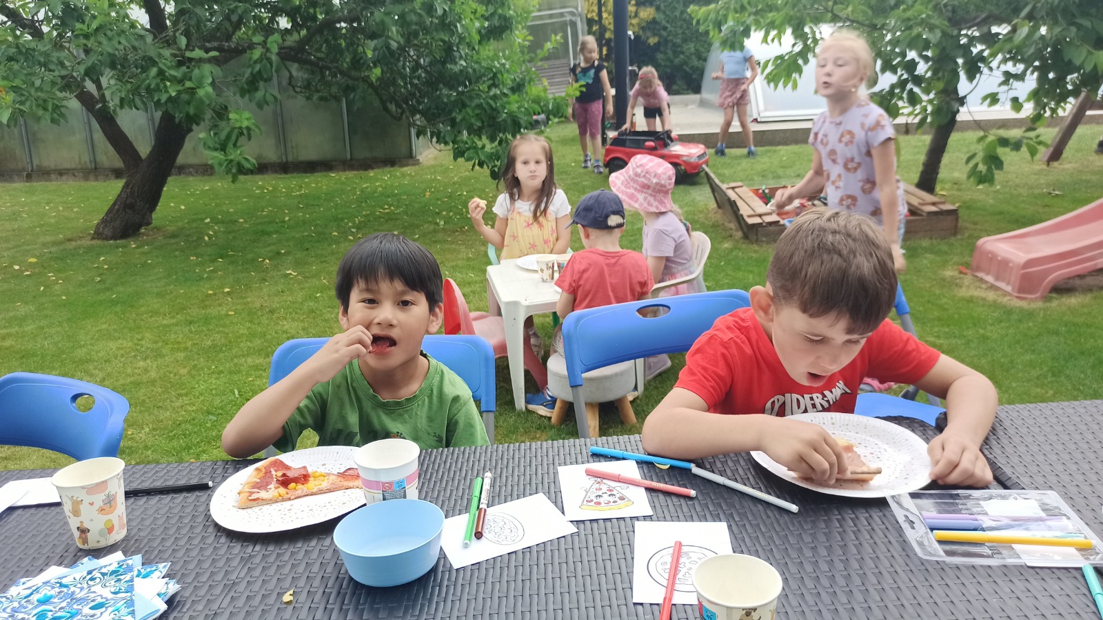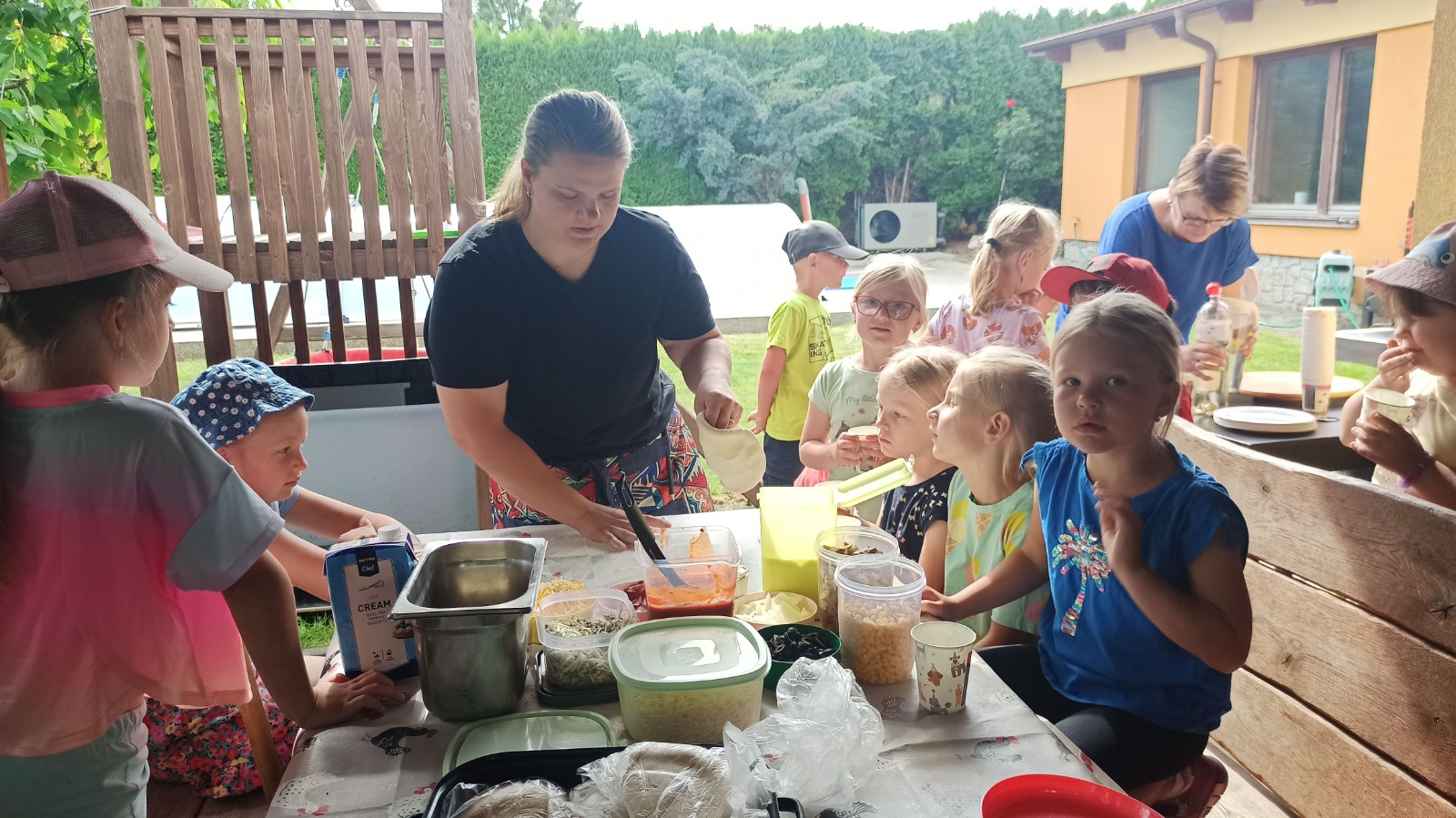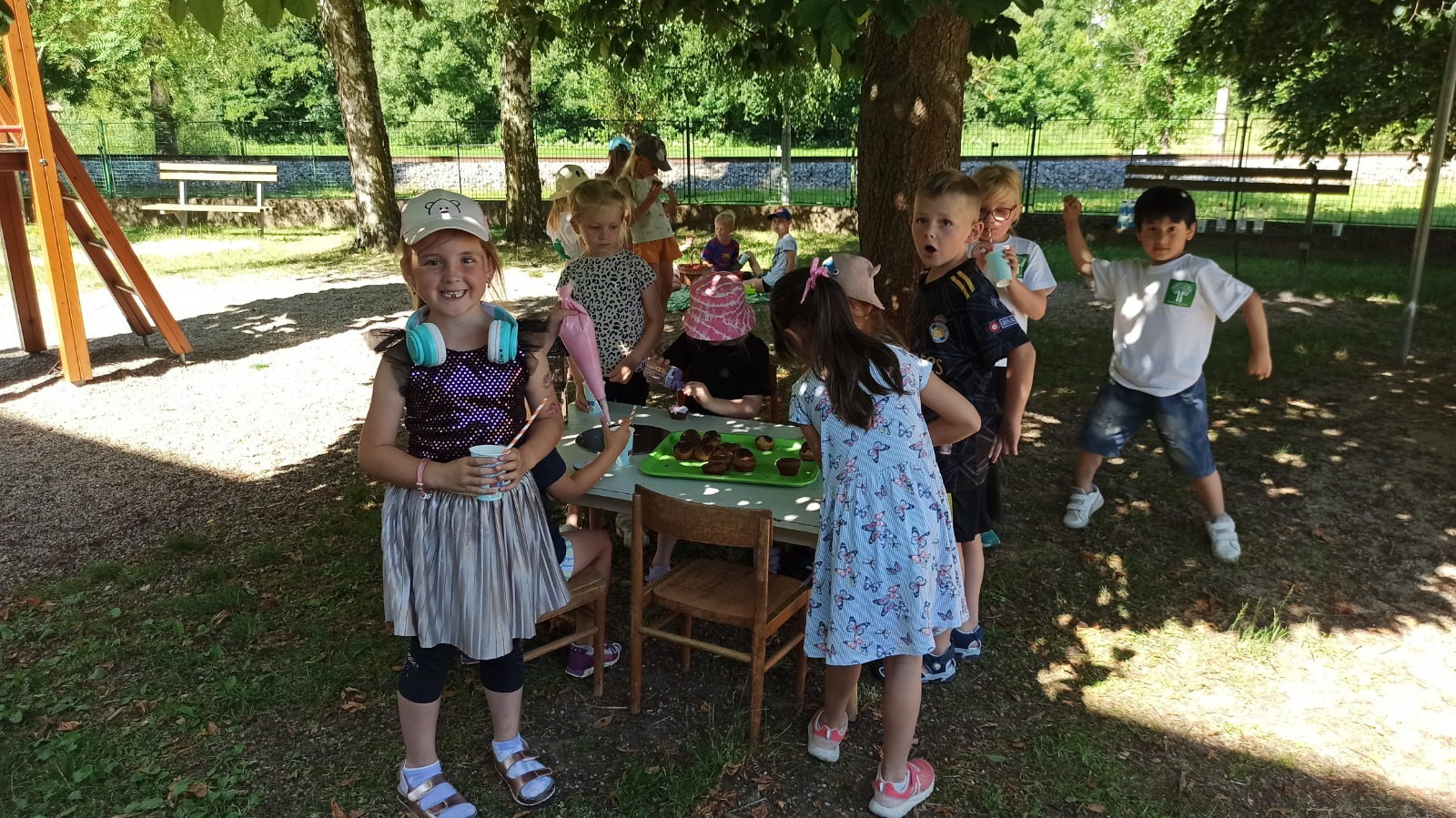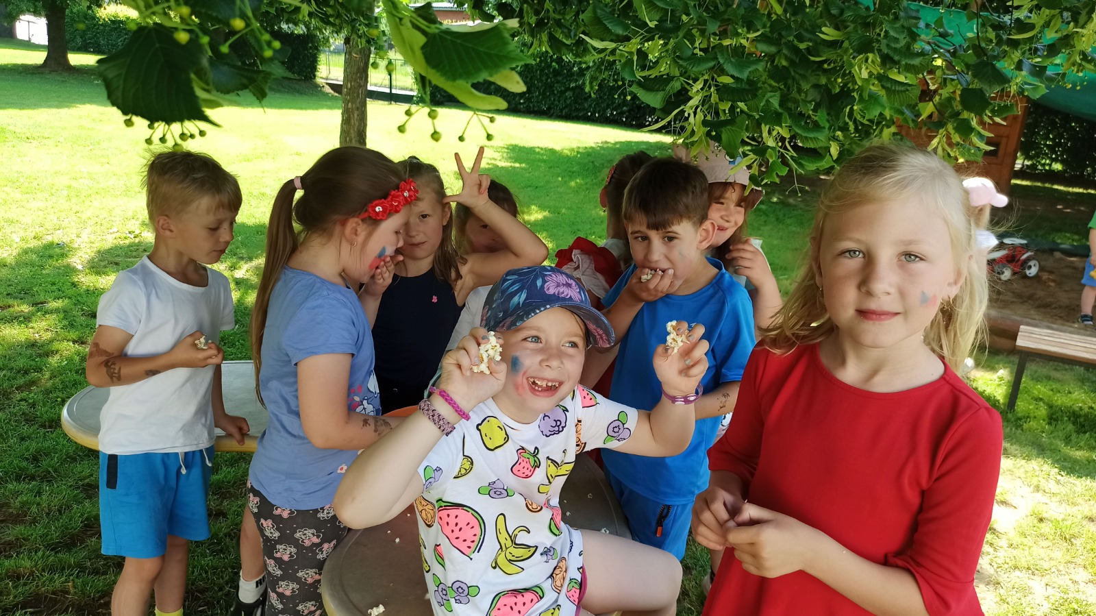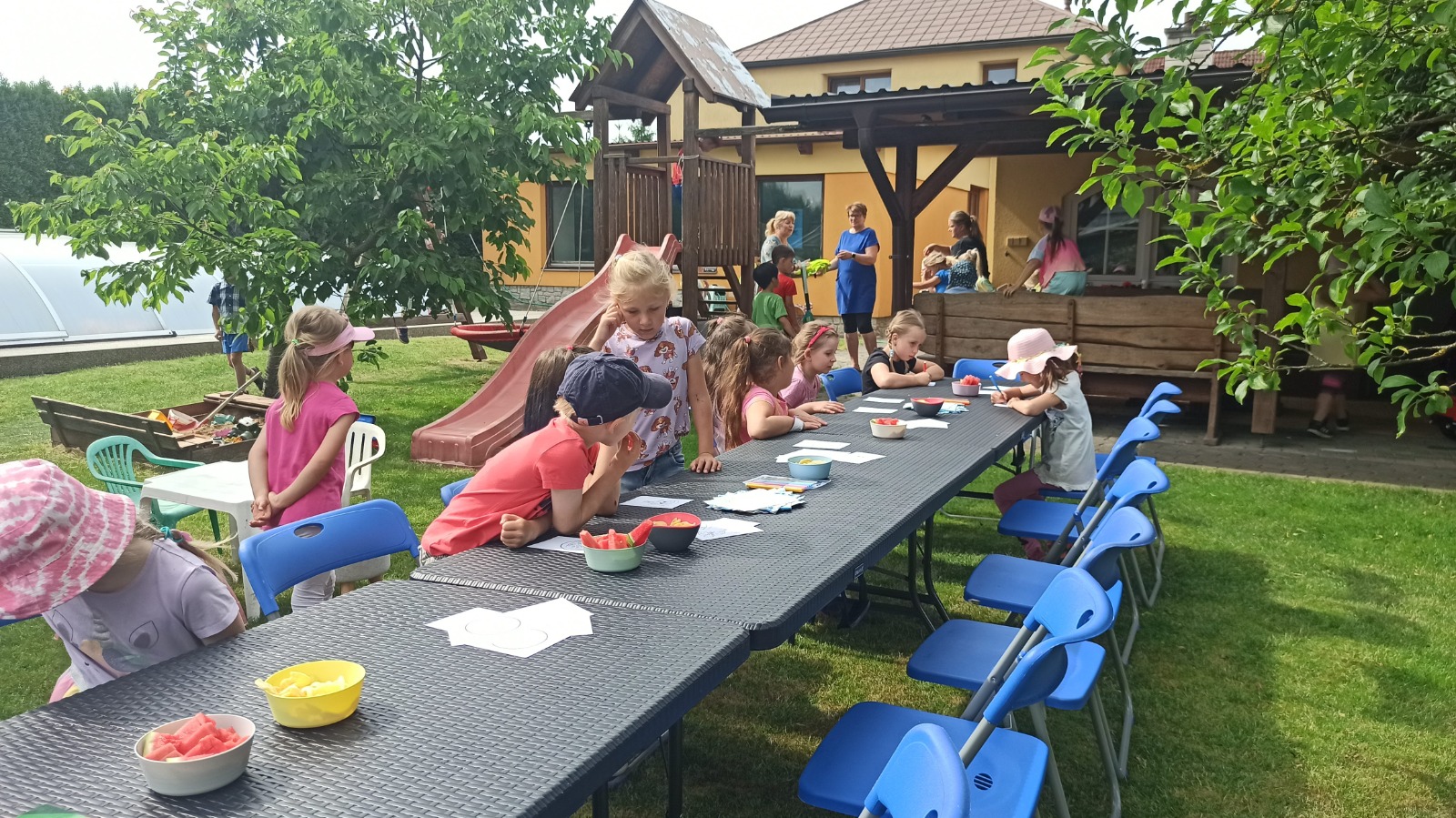 - Vojta - odpolední odpočinek a svačinka pod stromy na zahradě školky