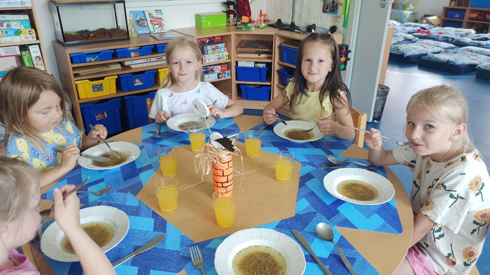- Kája - tajemství balíčku v dece, kdy jsme pomocí hry hádali plyšáka, kterého si kamarád přinesl, byl nám poté skvělým parťákem pro hry a odpolední odpočinek